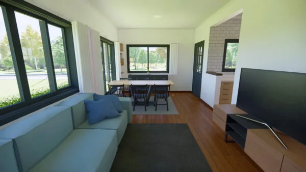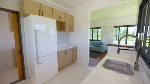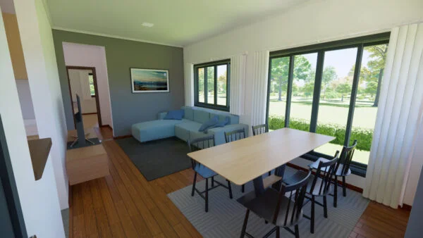 Una casa sencilla y cómoda, con porche delantero y garaje. Tiene un salón-comedor combinado y una cocina práctica de buen tamaño, así como un lavadero con espacio de almacenamiento. Con 2 dormitorios, uno de los cuales es una suite, la casa fue diseñada para proporcionar funcionalidad y comodidad, con iluminación y ventilación naturales.