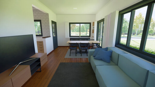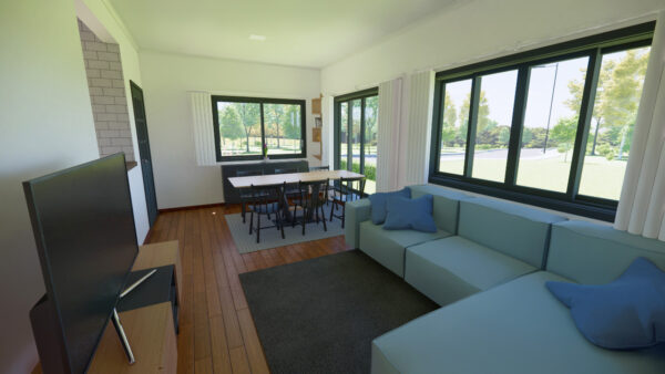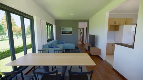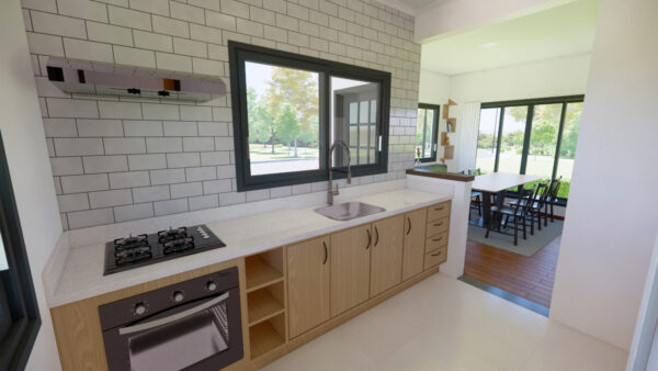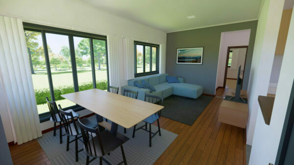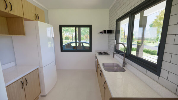 Una casa sencilla y cómoda, con porche delantero y garaje. Tiene un salón-comedor combinado y una cocina práctica de buen tamaño, así como un lavadero con espacio de almacenamiento. Con 2 dormitorios, uno de los cuales es una suite, la casa fue diseñada para proporcionar funcionalidad y comodidad, con iluminación y ventilación naturales.
