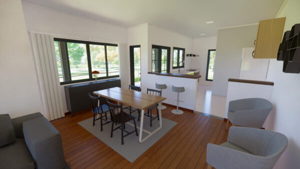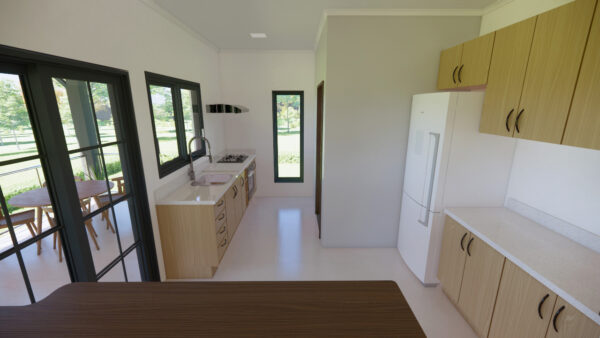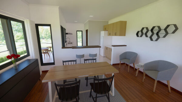 Casa con porche. Dispone de un salón-comedor y una práctica cocina, así como de un lavadero con espacio de almacenamiento. Con 2 dormitorios, uno de los cuales es una suite, la casa fue diseñada para proporcionar funcionalidad y comodidad, con iluminación y ventilación naturales.