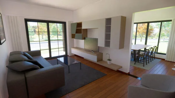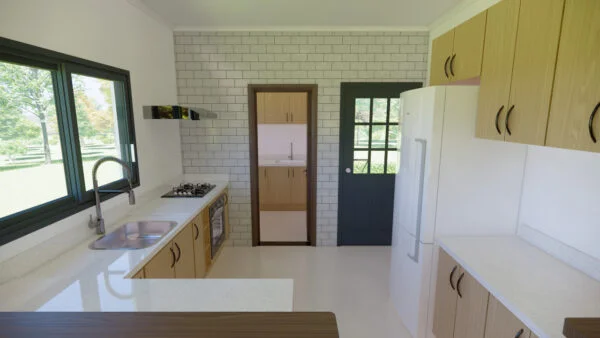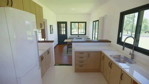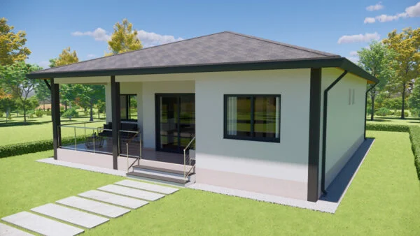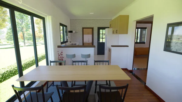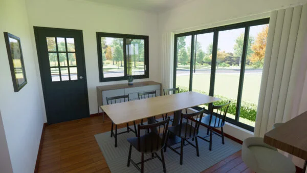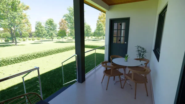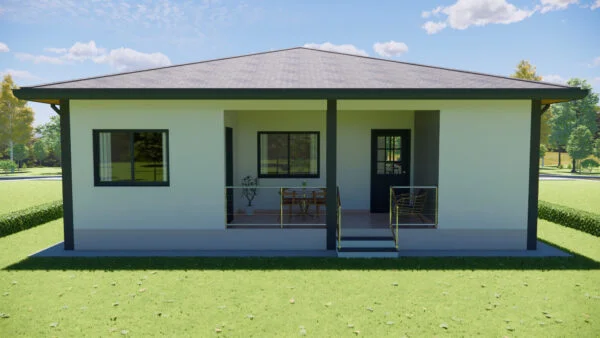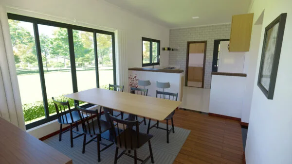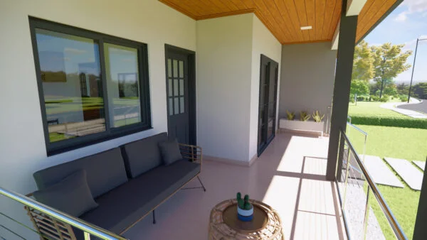 Casa con porche delantero y trasero. En su interior dispone de salón, comedor y cocina, así como de una zona para lavandería y almacén. Con 3 dormitorios, uno de los cuales es una suite, la casa se diseñó para ofrecer funcionalidad y comodidad, con iluminación y ventilación naturales.