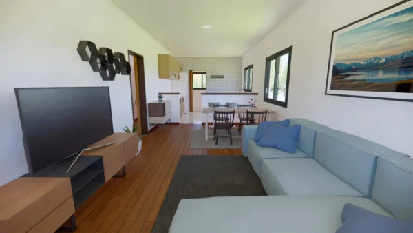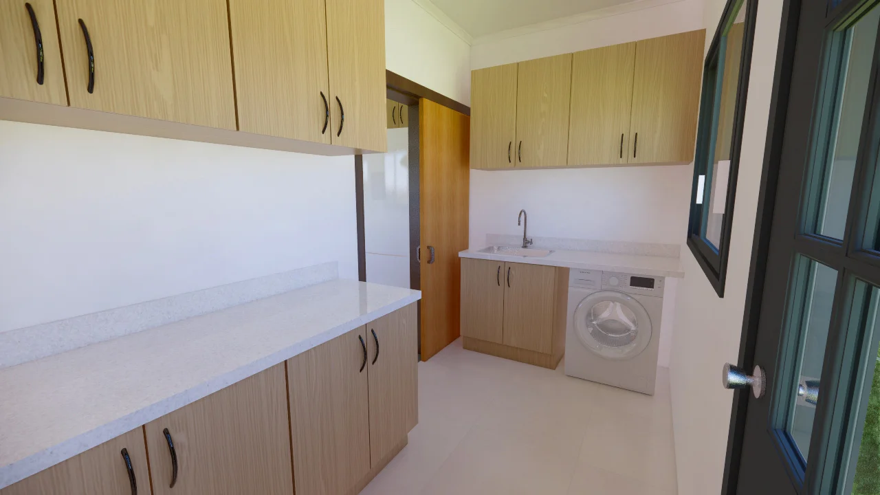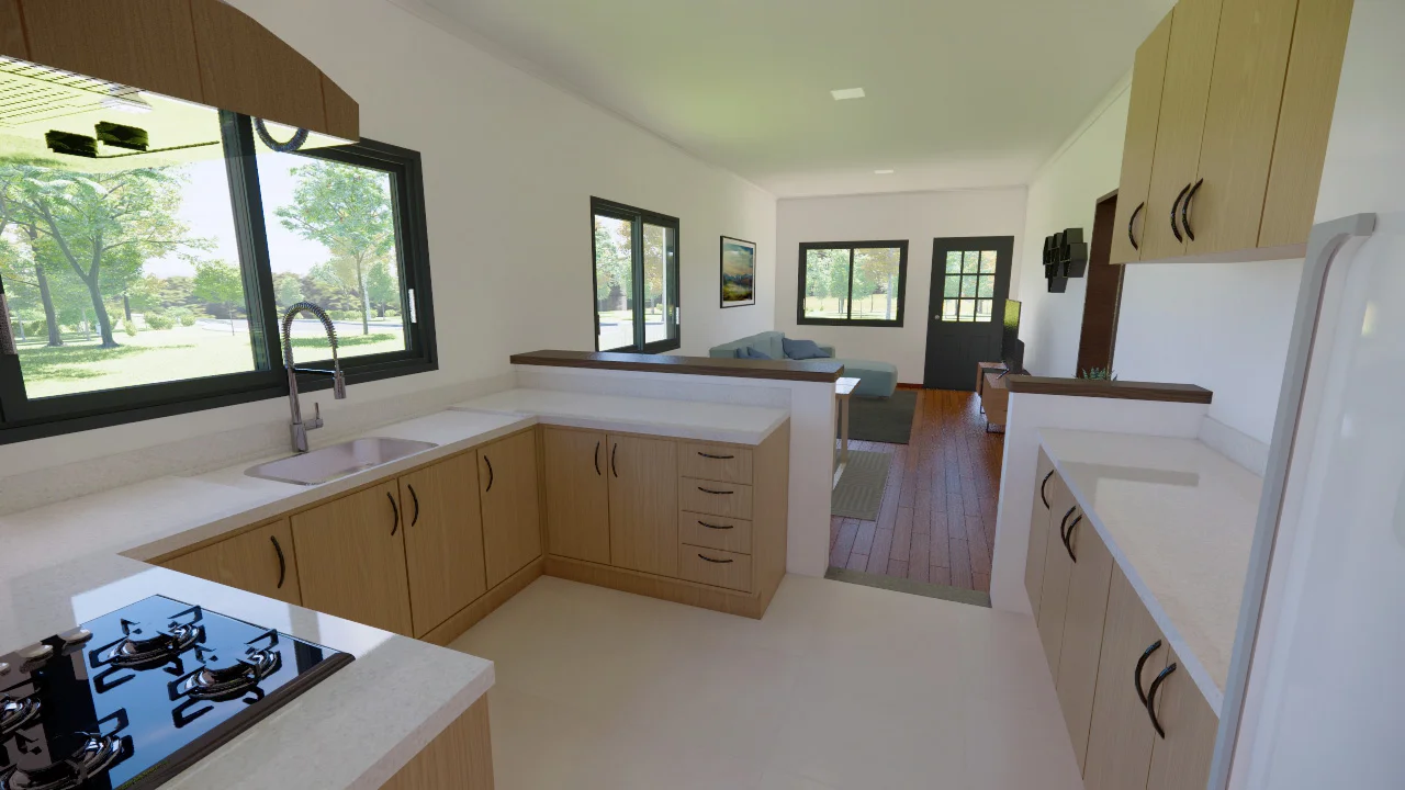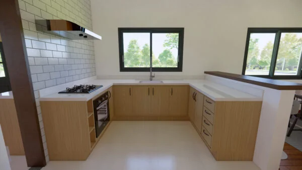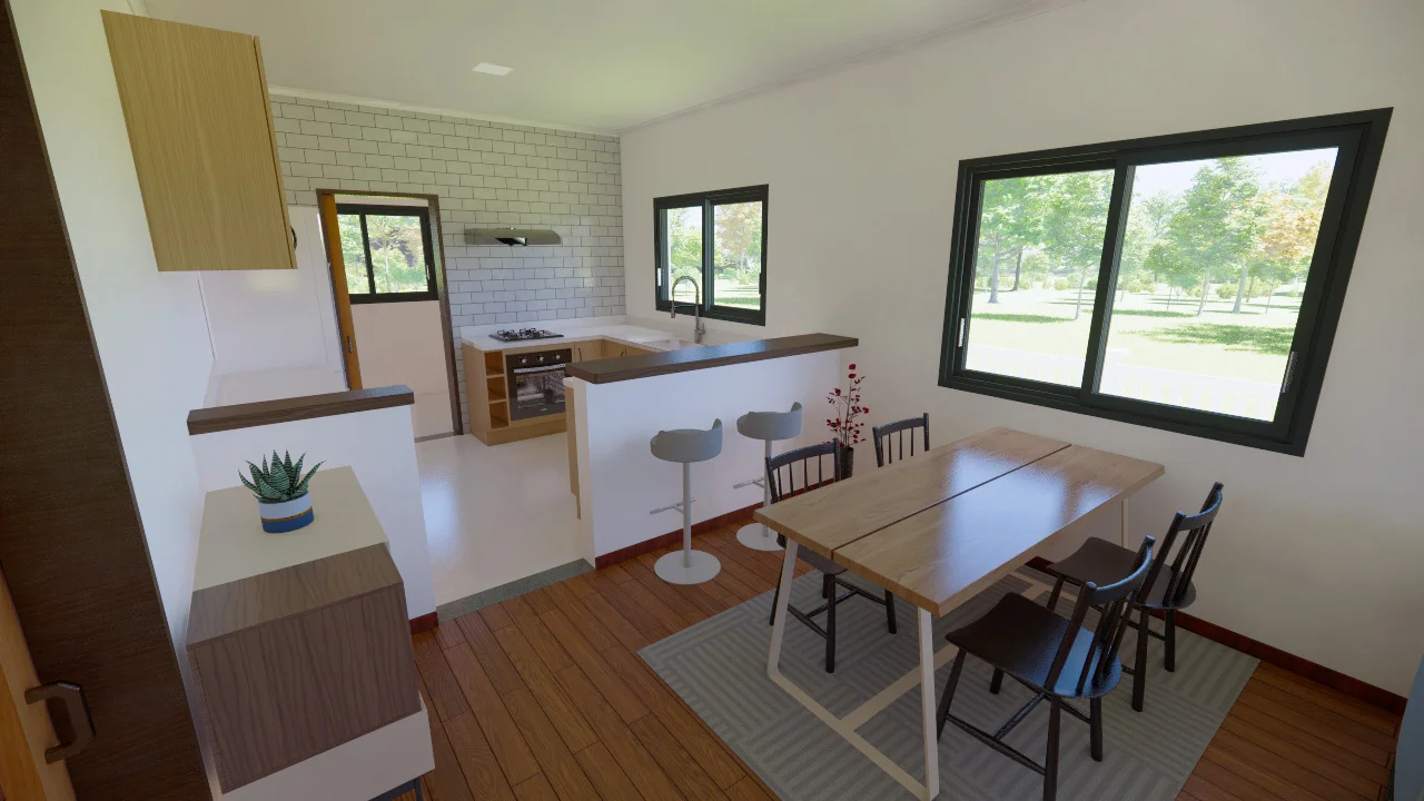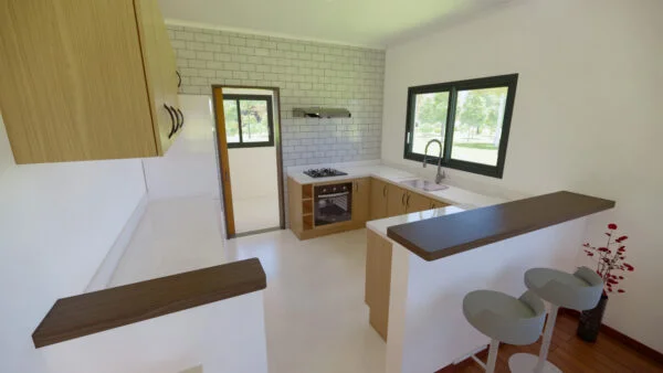 Una casa confortable, con salón-comedor y una práctica cocina. Tiene lavadero y despensa con espacio de almacenamiento. Con 3 dormitorios, uno de los cuales es una suite, la casa se diseñó para ofrecer funcionalidad y comodidad, con iluminación y ventilación naturales.