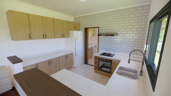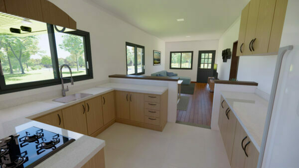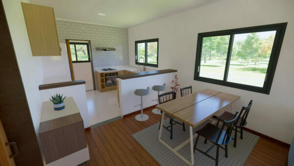 A comfortable house, with living and dining room, and a practical kitchen. It has laundry room and pantry with storage space. With 3 bedrooms, one of which is a suite, the house was designed to provide functionality and comfort, with natural lighting and ventilation.